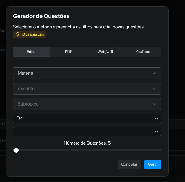 Geração de Questões (PDF, Texto, YouTube, Web)